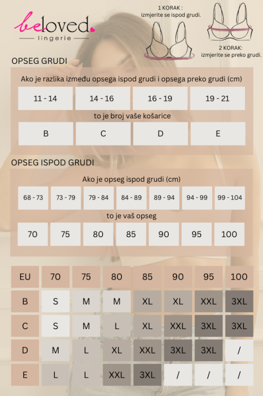 • Boje donjeg rublja na slikama mogu se malo razlikovati od stvarnih boja, zbog postavki telefona ili računala.